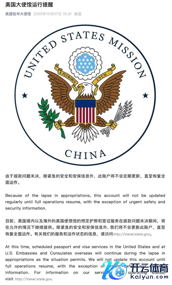 10月7日九游体育app官网,好意思国驻华大使馆官方微信和微博发布好意思国大使馆驱动指示: